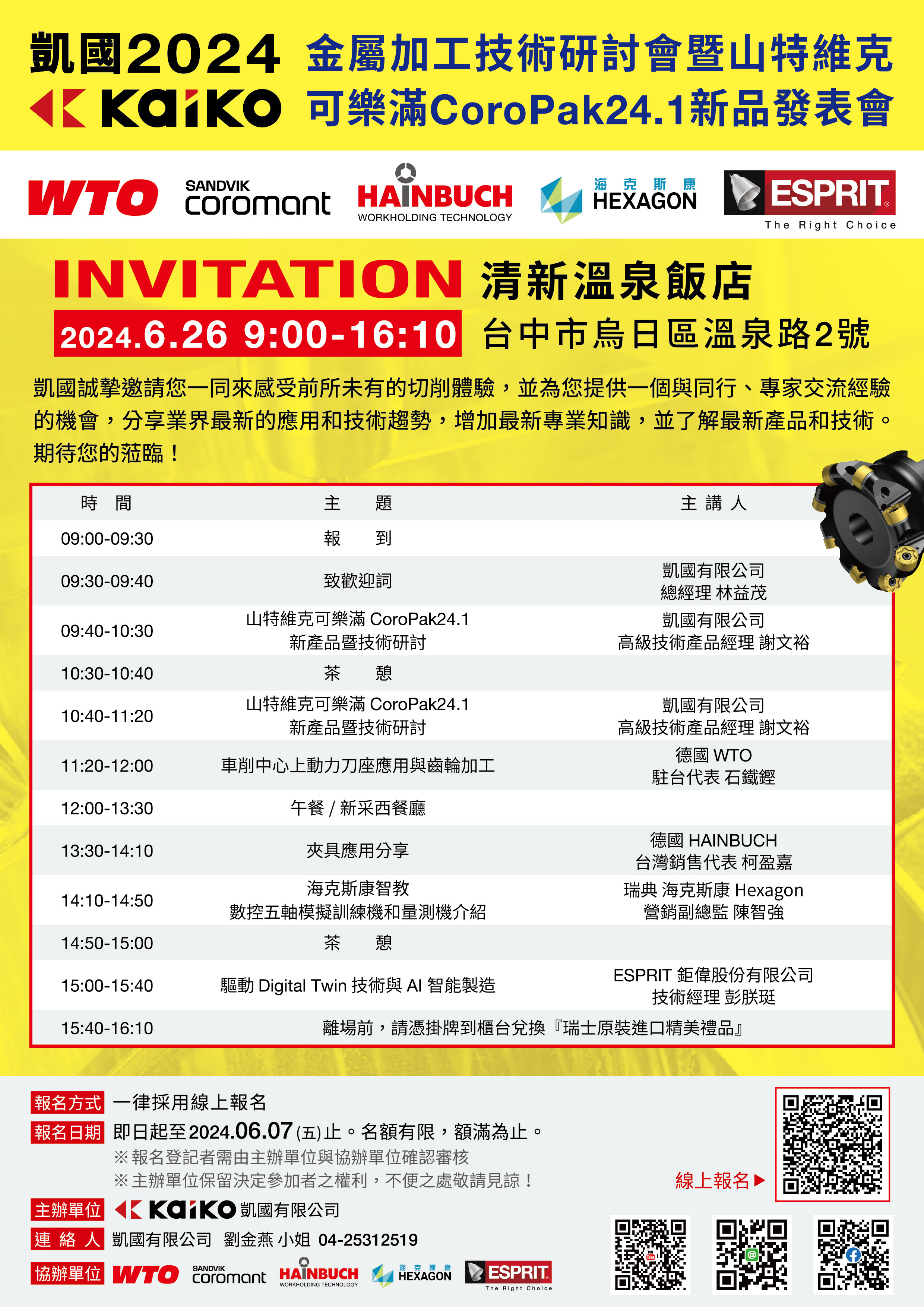 【凱國2024金屬加工技術研討會 暨山特維克可樂滿CoroPak24.1 新品發表會】