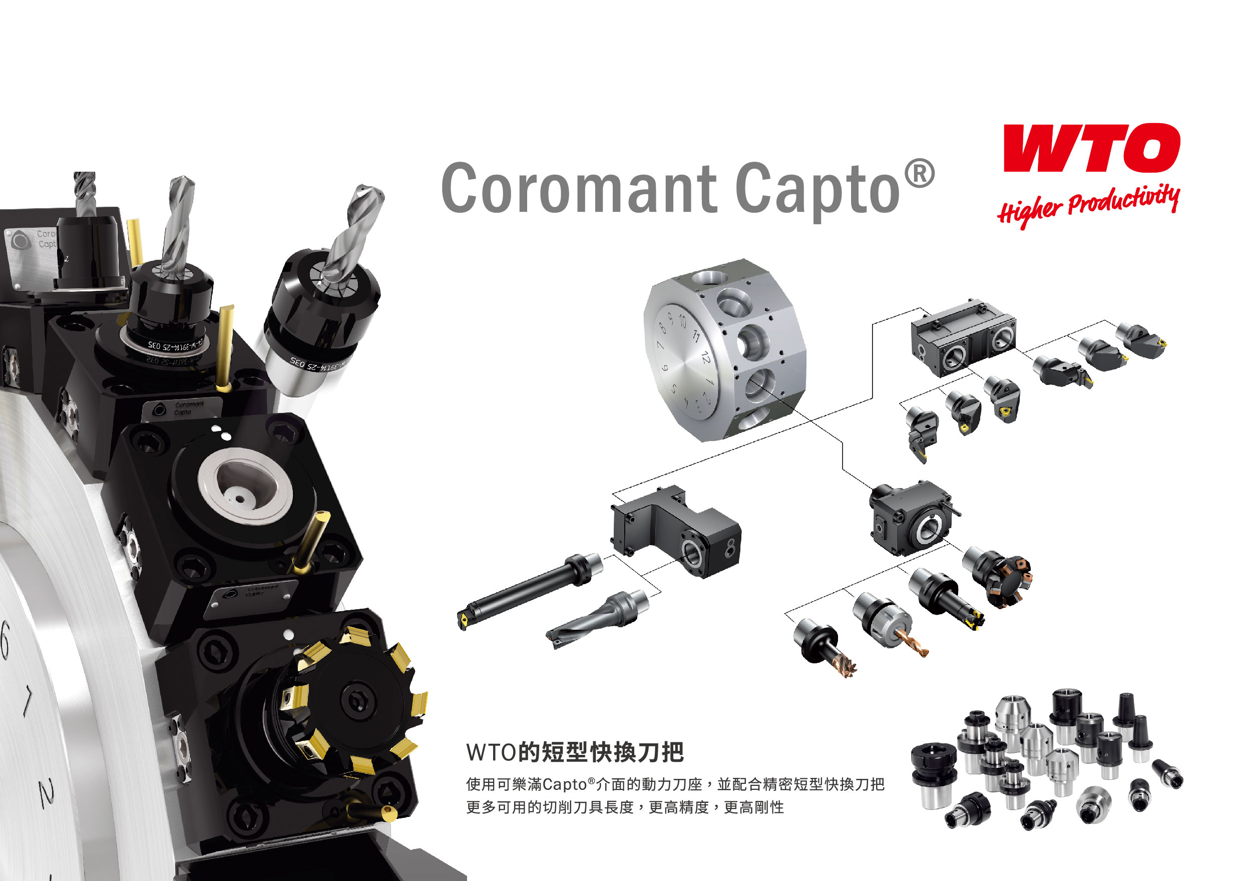 Coromant Capto® 快換系統動力刀座是由世界第一大刀具商瑞典山特維克可樂滿(SANDVIK Coromant)原創產品